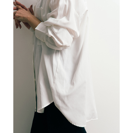 ゆったりとした身幅とヒップにかかる丈感で、体型カバーも叶うリラックスシルエット。
