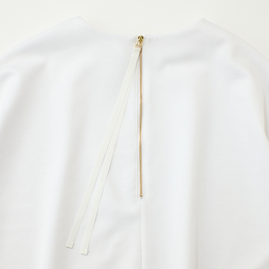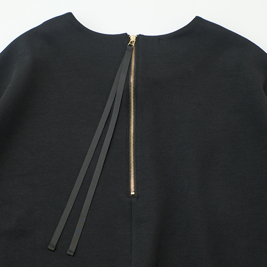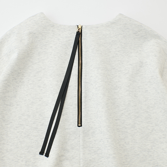 後ろにはさりげなく金属ファスナーをあしらい、