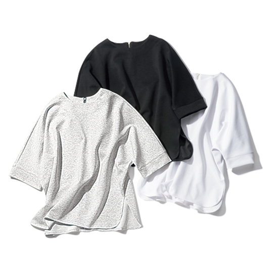 スウェットの気楽さと、きれいめトップスの上品さを