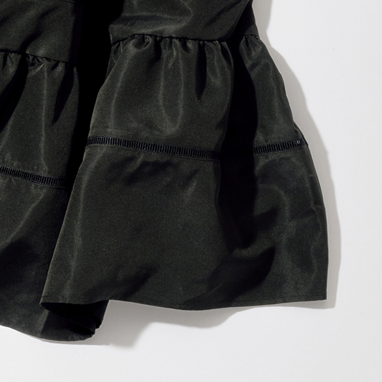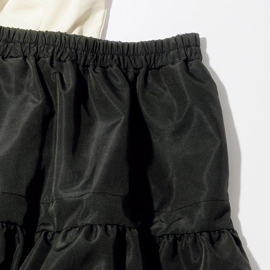 段々に広がるボリュームスカートはこれからの季節はTシャツ合わせに重宝。