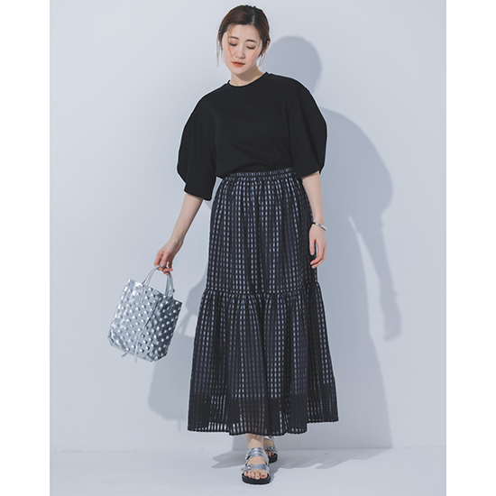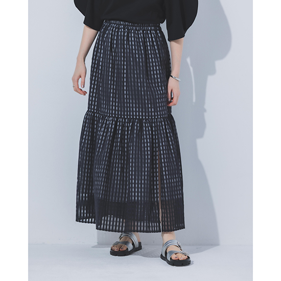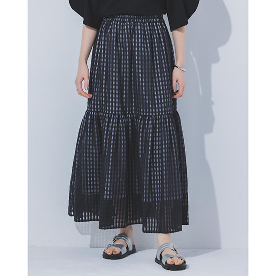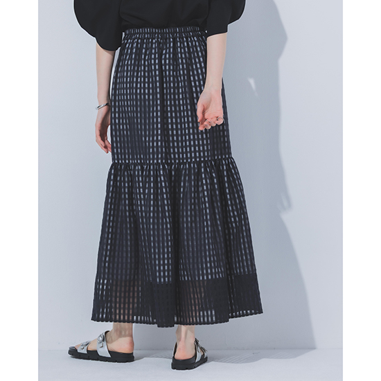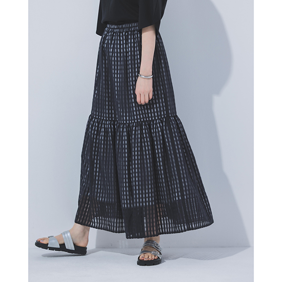 軽やかな素材感と繊細なチェック柄が織りなすニュアンススカート