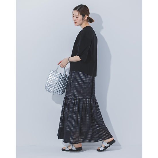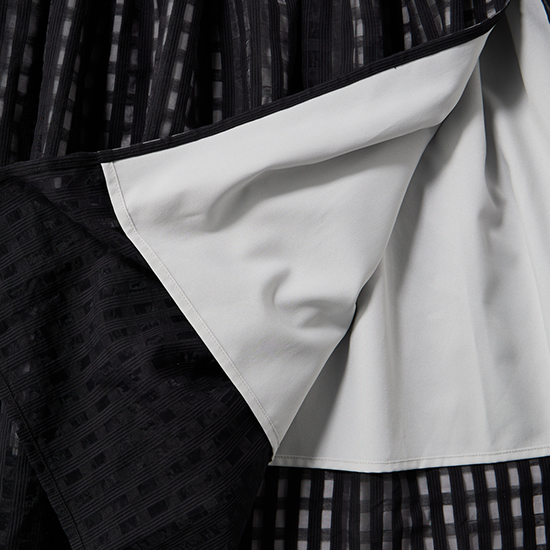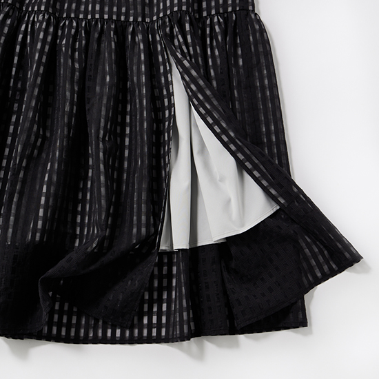 軽やかな素材に繊細なチェック柄をのせ、動きに合わせて表情が変わるニュアンススカート。