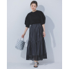 ギャザーを寄せた立体的なフォルムが、腰まわりをふんわり包み込む女性らしさを演出します。