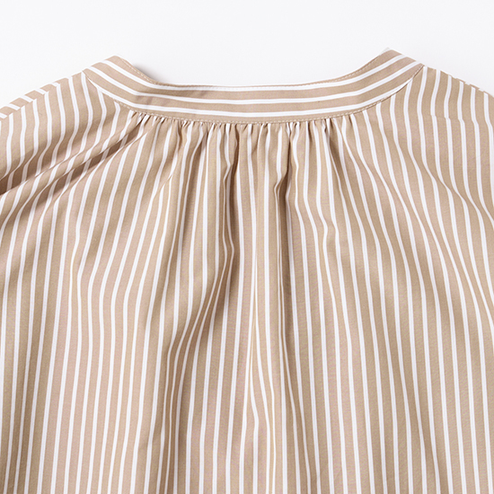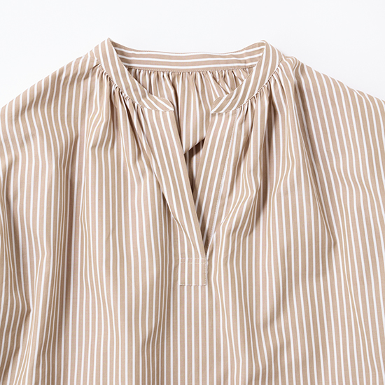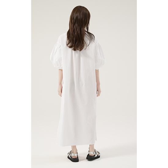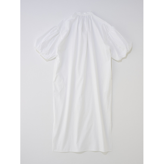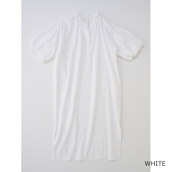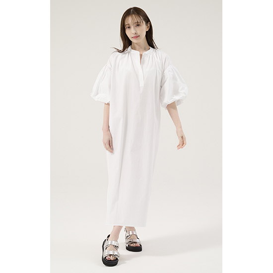デザイン:ボリュームスリーブのストレートラインワンピース。すっきりと洗練されたスキッパーの襟元が抜け感をプラスして女性らしい印象に。前後にギャザーを施し立体感のあるシルエットに仕上げ、サラッと最適な着心地ながら1枚で上品見えするワンピース。華奢なサンダル合わせで女性らしく、スニーカーなどと合わせてカジュアルに足元で外すスタイルもおすすめです。