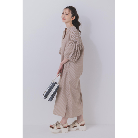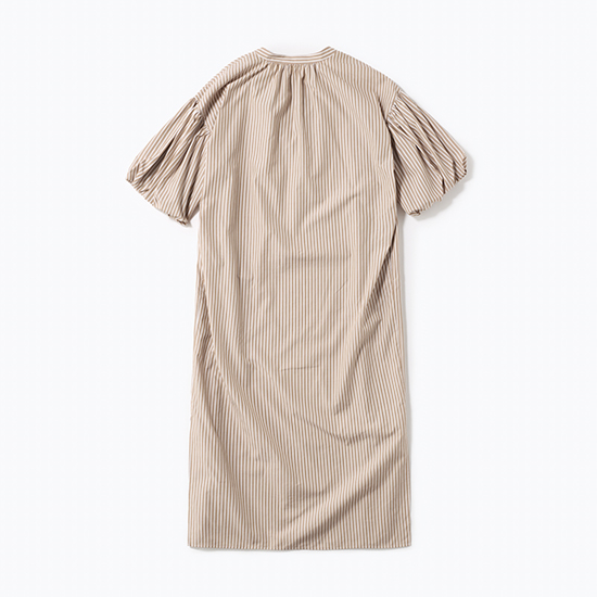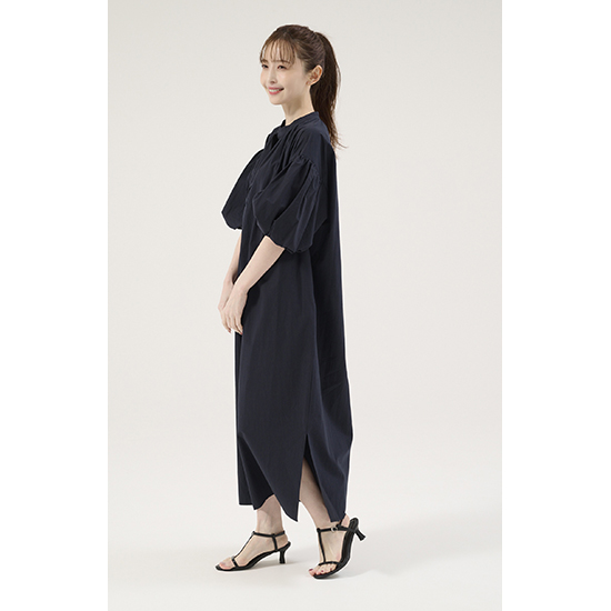 <p><font color=#c31941 size=3>ボリュームのあるバルーンスリーブが可愛い!さらっと最適な着心地の上品ワンピース</font><br><br>素材:(ムジ)インドの長綿オーガニック原料を使用し、近江の伝統的な染色技法で仕上げた素材。<br><br>(ストライプ)繊維長がとても長いことで均質、強度ともに大変優れ、適度な油脂分を含むことでカシミヤの「ような優しい風合いとシルクのような美しい光沢のある素材。<br>デザイン:ボリュームスリーブのストレートラインワンピース。すっきりと洗練されたスキッパーの襟元が抜け感をプラスして女性らしい印象に。前後にギャザーを施し立体感のあるシルエットに仕上げ、サラッと最適な着心地ながら1枚で上品見えするワンピース。華奢なサンダル合わせで女性らしく、スニーカーなどと合わせてカジュアルに足元で外すスタイルもおすすめです。<br>※着用モデル 162㎝<br><br>■バイヤー・利根川リカコ profile<br>60代、2児の母。ABAHOUSEにてコーディネーター、インポートバイヤーとして関わる。<br>その後、雑誌STORY、HERSなどのライター、モデルを経て、現在HERS CLOSET、kokodePLUSのバイイングに携わる。<br>30代の頃から一貫してブラックコーデが好き。<br></p>