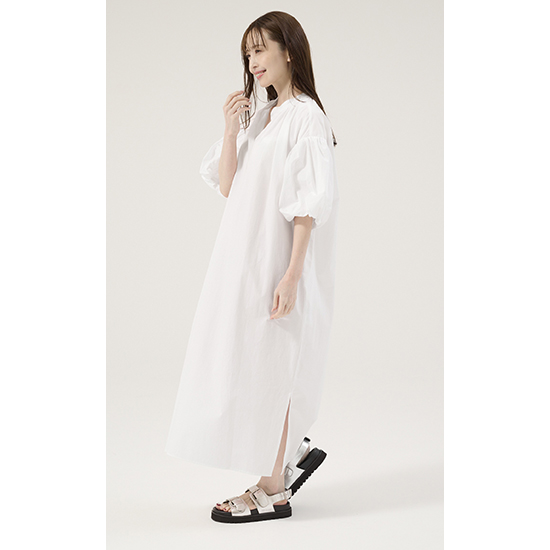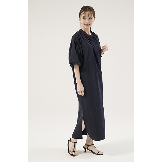 ボリュームのあるバルーンスリーブが可愛い!さらっと最適な着心地の上品ワンピース