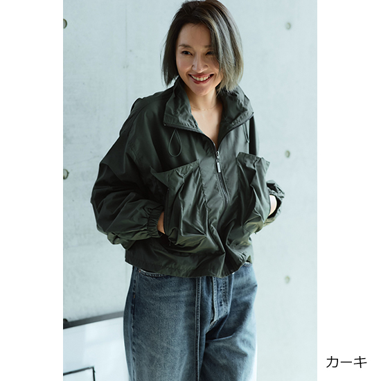 <p><font color=#c31941 size=3>羽織るだけで体型バランスが整う「優秀ブルゾン」登場</font><br><br>ハリのあるタフタ素材が体のラインを拾わず、自然に身体から離れることで、着るだけでメリハリのある美しいシルエットに。360度どこから見ても立体的で、すっきり見えを叶えるブルゾンです。<br><br>胸元の立体ビッグポケットと、袖内側のギャザーが生むボリュームスリーブが程よい存在感をプラス。裾と襟元はドロスト仕様で、絞れば丸みのある女性らしいフォルムにも。<br><br>コンパクト丈でスタイルアップ効果も抜群。デニムなどのカジュアルはもちろん、サテンスカートやトラックパンツと合わせた大人のこなれスタイルにも活躍する一枚です。</p>