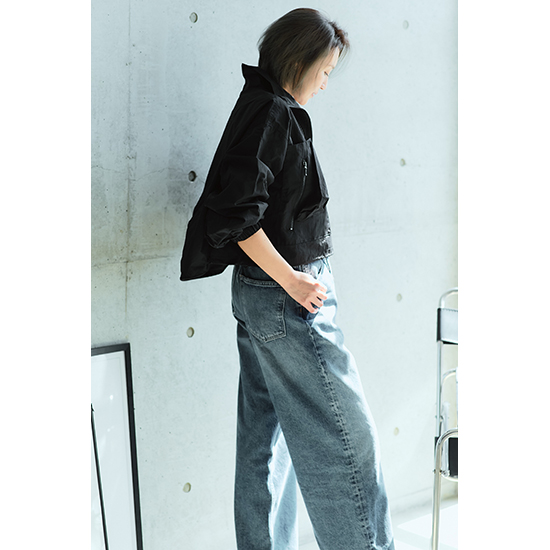 コンパクト丈でスタイルアップ効果も抜群。デニムなどのカジュアルはもちろん、サテンスカートやトラックパンツと合わせた大人のこなれスタイルにも活躍する一枚です。