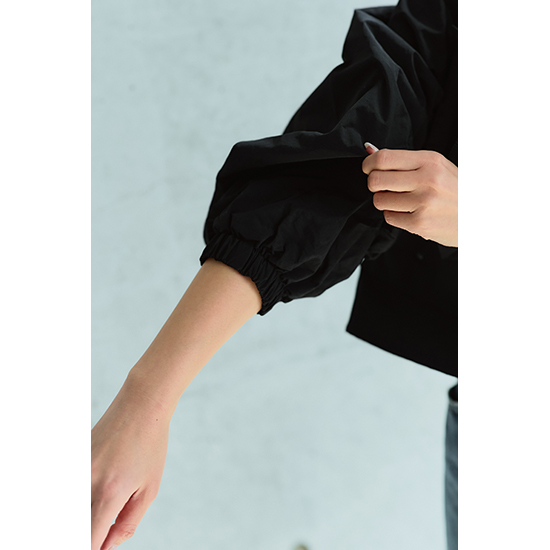 ハリのあるタフタ素材が体のラインを拾わず、自然に身体から離れることで、着るだけでメリハリのある美しいシルエットに。360度どこから見ても立体的で、すっきり見えを叶えるブルゾンです。