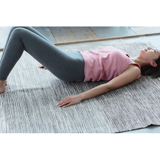 ・おしりの真ん中に本品を当てて仰向けになり、肩幅に足を拡げ、膝を曲げて軽く左右に揺れます。