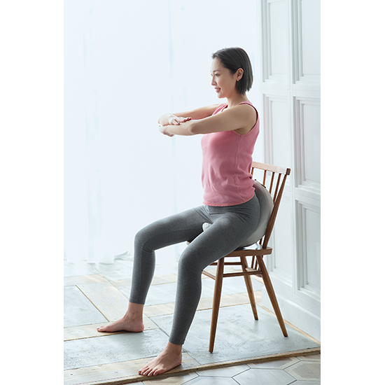 ③前屈運動で下半身の柔軟性が柔らかくなります。 ①~③の運動を適度に行うことで尿漏れや股関節の痛みをケアします。