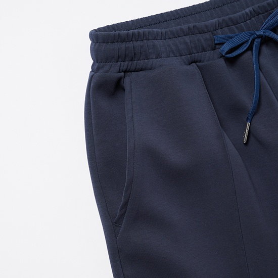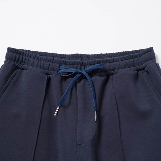 ウエストぐるりゴム+ドローコードも配置しているので、ウエスト回りの締め付けもなく快適に着用頂け、若干のテーパードシルエットやピンタックが脚長効果演出。