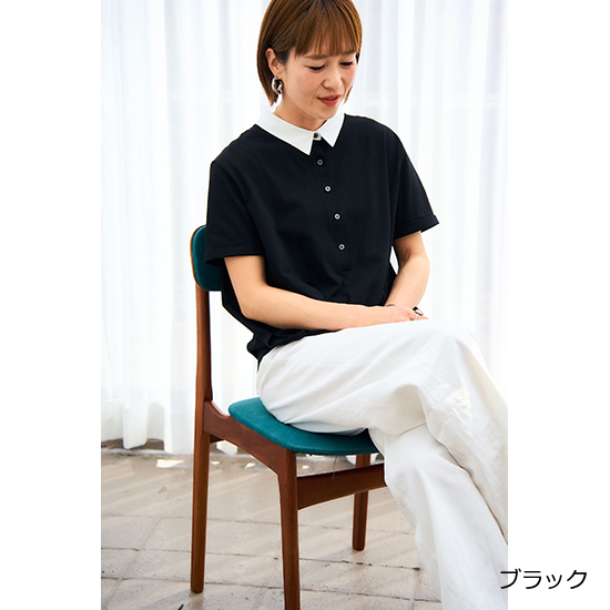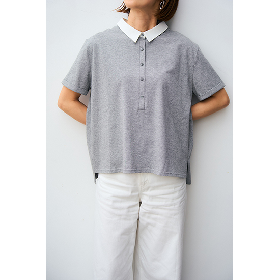 衿を配色にしたポロデザインのバックタックトップス。