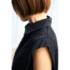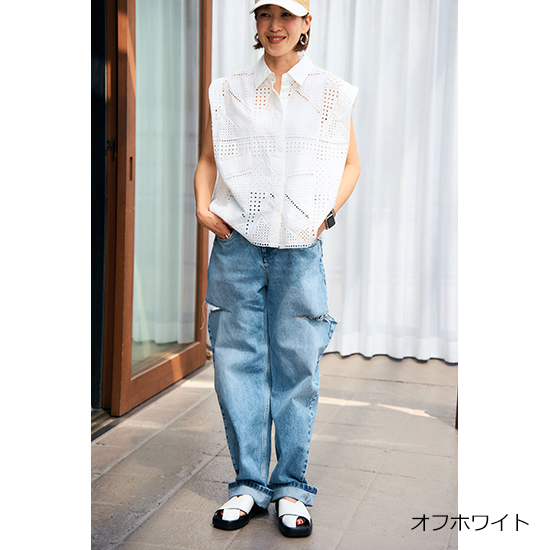<p><font color=#c31941 size=3>繊細なカットワークレースが目を惹く、存在感たっぷりのデザインシャツ</font><br><br>幾何学調のレース柄が甘くなりすぎず、大人っぽく洗練された印象に仕上げてくれます。<br>程よく肩を覆うフレンチスリーブで、気になる二の腕をカバーしつつ軽やかな抜け感をプラス。ゆとりのあるシルエットで風通しも良く、暑い季節でも快適に着用いただけます。<br>前開き仕様なので、1枚着としてはもちろん、羽織りとしても活躍。タンクトップやキャミソールとレイヤードすることで、レースの透け感を楽しめるのも魅力です。<br>コットン100%のナチュラルな素材感で、肌あたりもやさしくデイリー使いにぴったり。オフホワイトは爽やかに、ブラックはシックに引き締まった印象で着こなせる2色展開です。</p>