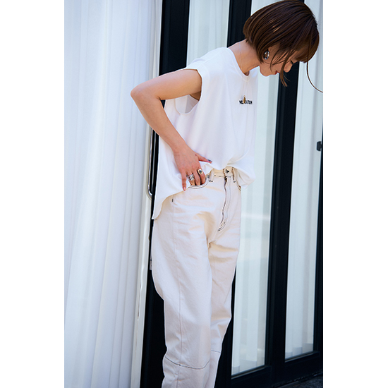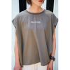 シンプルながらも胸元のロゴ刺繍がアクセントになった、大人カジュアルなフレンチスリーブトップス