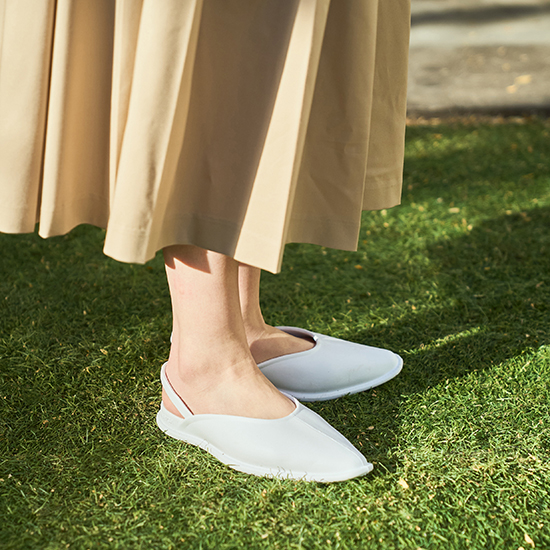 足にやさしくフィットする一体成型構造とクッション性のあるソールが快適な履き心地をサポートします。