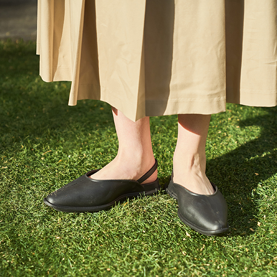 滑らかな曲線で仕上げたシンプルなデザインが、洗練された足元を演出。