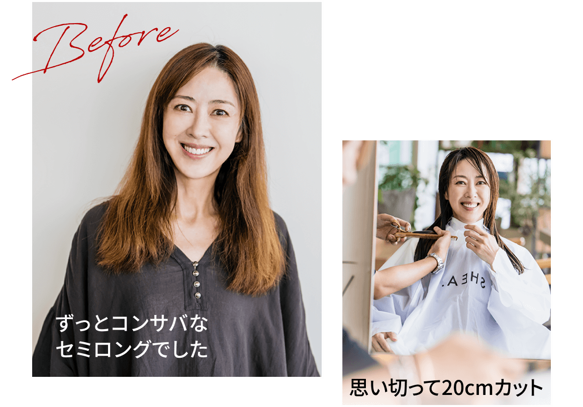 ヘアスタイルについて、私はなで肩のうえ首がヒョロリと長く、「バランスが難しいのでは?」と髪を短くすることにはずっと抵抗があって、コンサバなセミロングをキープしていました。