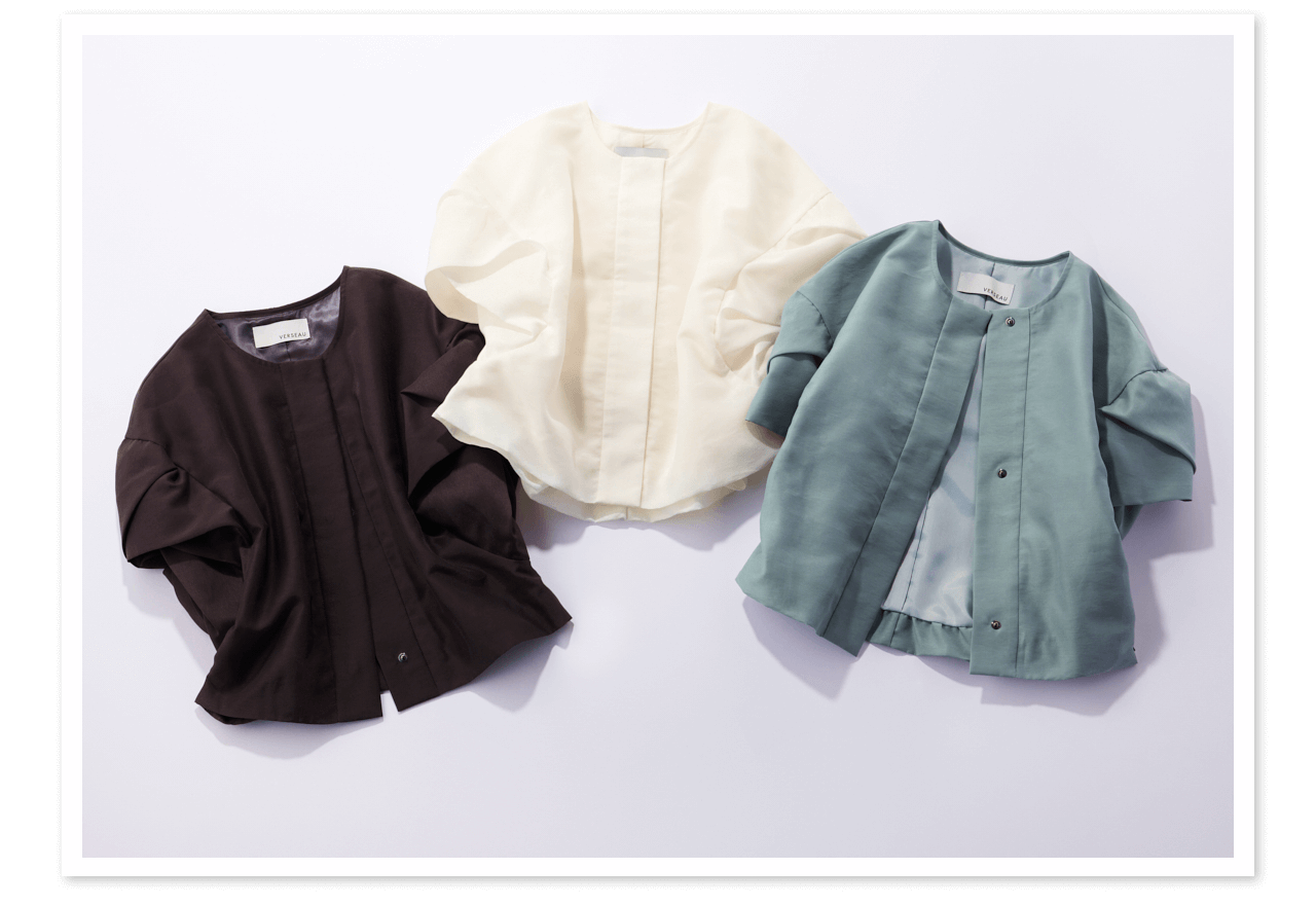 軽くてノンストレスな素材感と着るだけでサマになるのが大人に嬉しい、立体的なフォルムのオーガンジーブラウス。適度な透け感と控えめな光沢も、大人にちょうどいい流行感です。