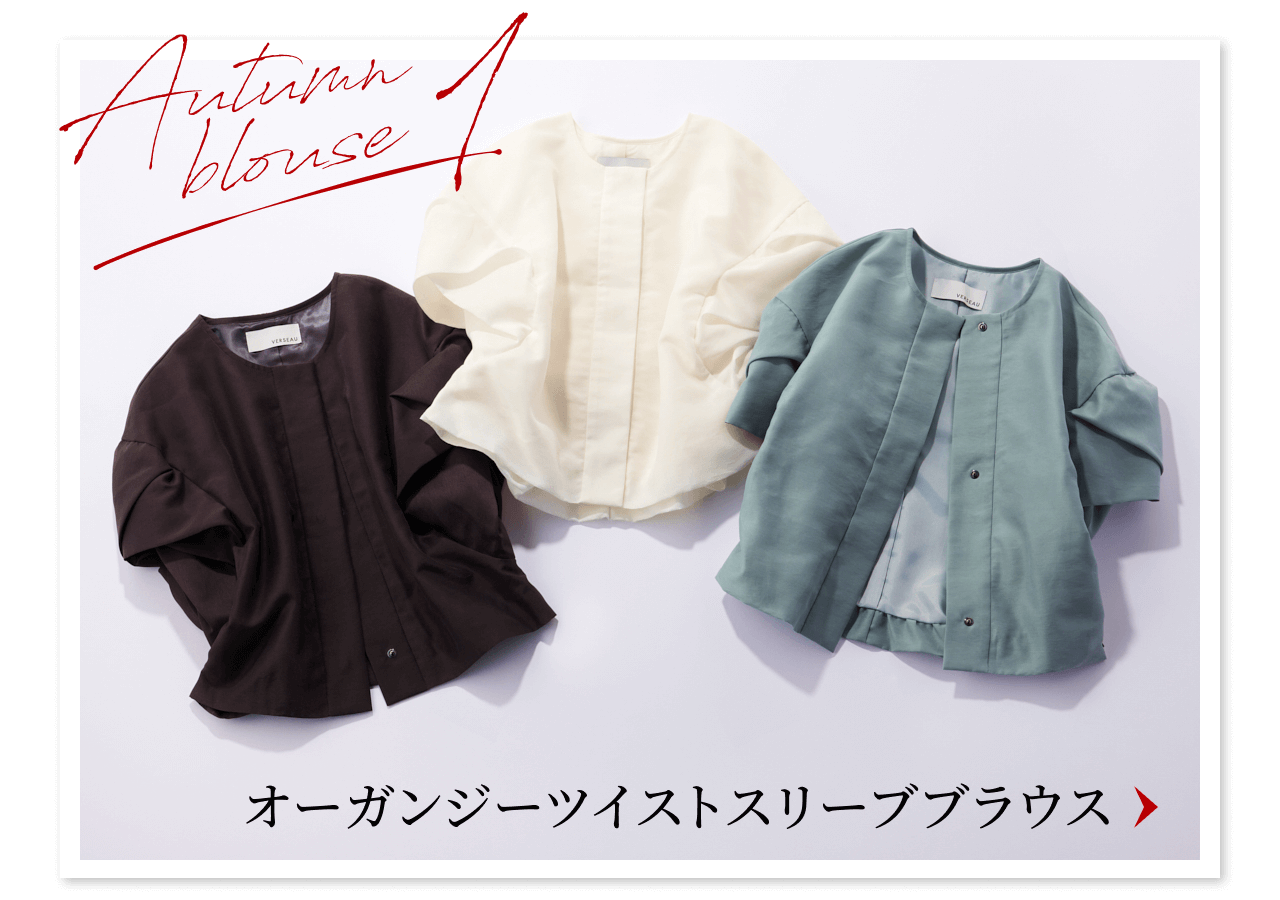 そこで、秋のはじめ、大人の体型にもプライドにも寄り添う、3つの「秋ブラウス」をご提案します!