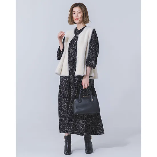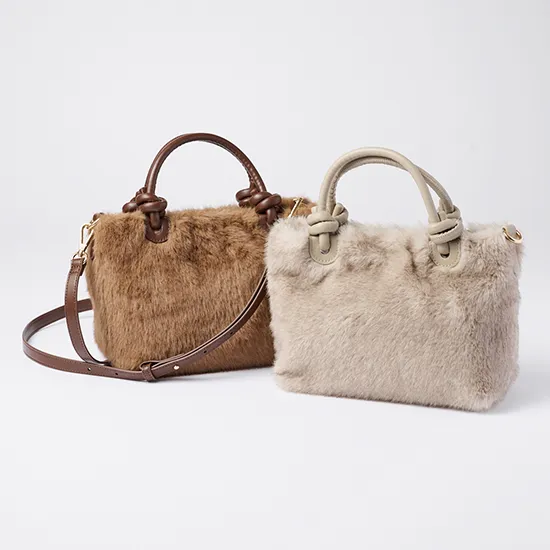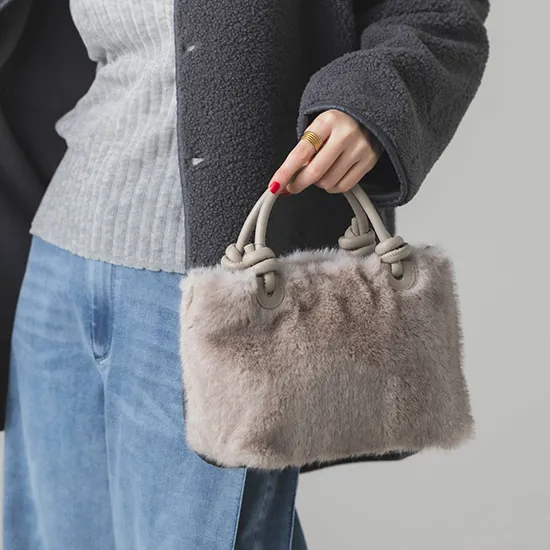 優待価格[cache cache]ミンク風フェイクファーノットハンドルバッグ