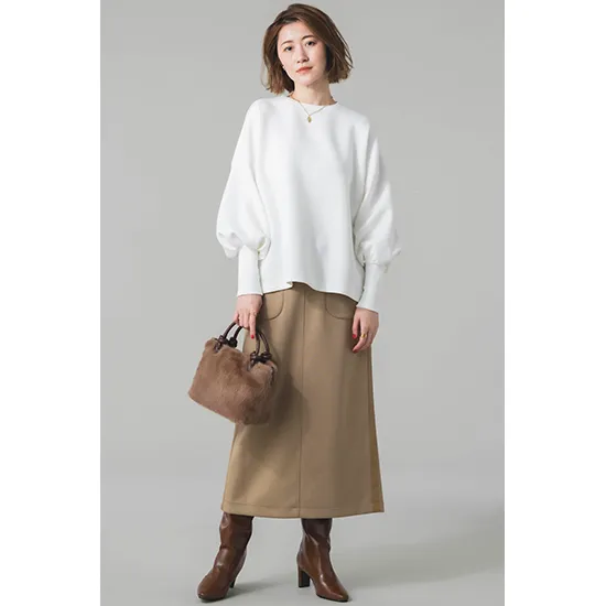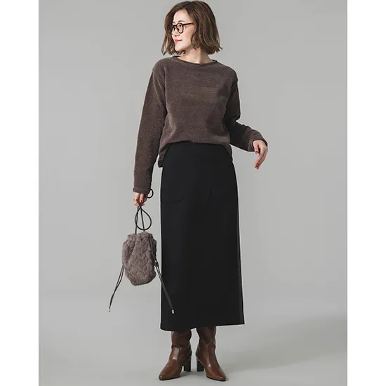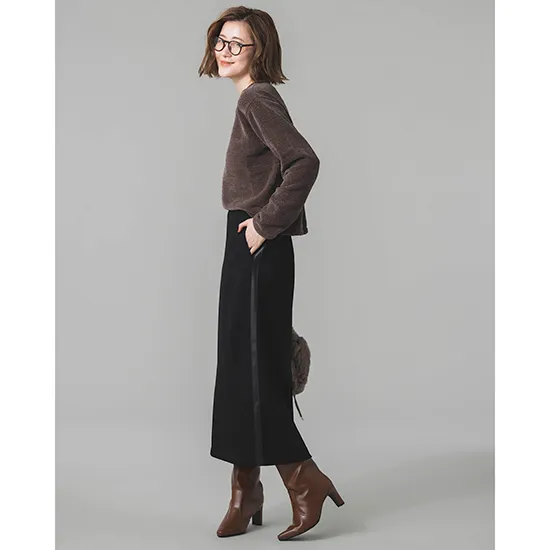 優待価格[DONEEYU]【洗える・暖か】カシミヤタッチ両面起毛タイトスカート