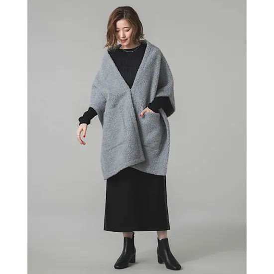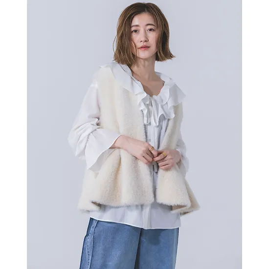 優待価格[Dignite collier]【Hello beautiful!】ムートン風リバーシブルジレ風ストール