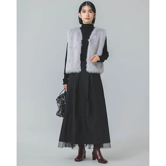 優待価格[Dignite collier]フェザーヤーンペプラムジレ