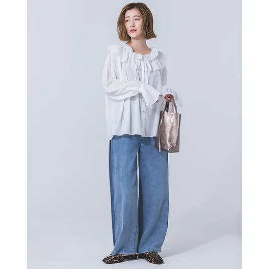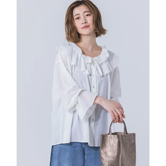 優待価格[Limue]【洗える】ラッフルシアブラウス