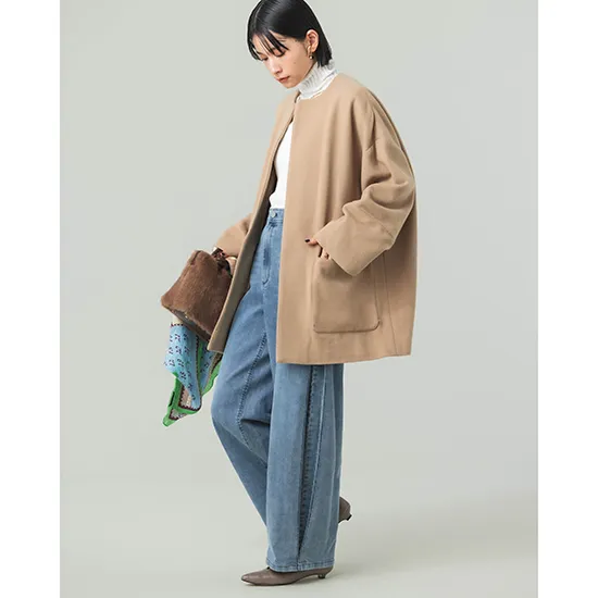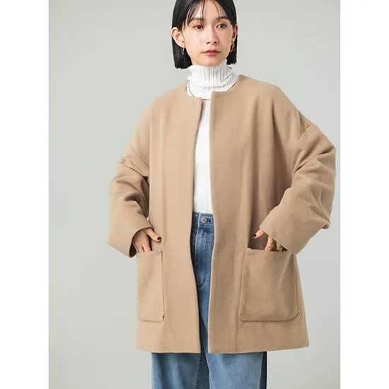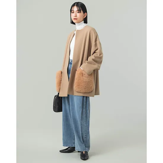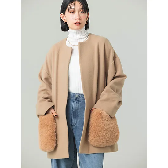 優待価格[Dignite collier]【2WAY】ファーポケットノーカラーコート