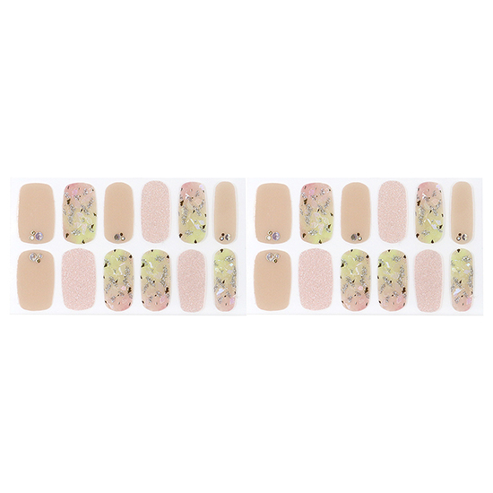 <p><font color=#c31941 size=3>2022春夏Collection!<br >装着&OFFが簡単!週末や、1日だけでもジェルネイルが楽しめる。</font><br><br>■□■ 商品詳細 ■□■<br >まるでお花のような繊細で可憐なシルバーラメに淡いカラーの春ネイル<br ><br >ジェルネイルの成分を約35%のみ硬化させた<br >貼って硬化するジェルネイルシール!<br ><br >【こんな方におすすめ!】<br >□ 忙しいママの時短ネイルに<br >□ 旅行に行く時も簡単装着<br >□ 美容時間がない女性に<br >□ 突然のパーティーにも<br >□ 週末だけネイルを楽しみたい<br ><br >■□■ 使用方法 ■□■<br >【ご使用前に】<br >●爪に油分や水分、汚れが付着しているとシールが剥がれやすくなりますので、爪の表面をキレイに拭き取ってください。<br >●甘皮を処理し、付属のファイルなどで爪の形や表面を整えるとよりキレイに仕上がります。<br >●シートからネイルシールを剥がす際にはシートの外側部分を持って剥がしてください。<br ><br >【使用方法】<br >1、製品を爪に合わせ、爪よりも少し小さめのネイルシールをお選びください。<br >2、キューティクルラインと1mmほどの余裕のあるところにネイルシールを貼ってください。<br >3、ネイルシールを貼って余りのネイルシールは爪の形に合わせて折ってください。<br > ファイルを利用して、爪の下の方向に向けて余りのネイルシールを削ってください。<br >4、お好みの硬化方法を選んでください。<br >・寝る前に貼り硬化する場合<br >・自然光で硬化する場合:約2時間(自然光の多い室内と室外にて)<br >・UV&LEDライトで硬化する場合:約30秒<br ><br >【剥がし方】<br >●ウッドスティックでキューティクルラインからゆっくり押し出しながら剥がしてください。<br >※剥がしにくい場合はお手持ちのハンドクリーム等を塗ると効果的です。<br > UV&LEDライトを使用して硬化すると自然光で硬化するよりも剥がしづらい可能性があります。<br ><br >■□■ 使用上のご注意 ■□■<br >●本来の用途目的以外には使用しないでください。<br >●アレルギー体質の方、爪や爪付近の肌に異常があらわれた場合は、直ちにご使用を中止し、皮膚科専門医等にご相談ください。<br >●ネイルシールの持続時間には個人差があります。<br >●長時間の水仕事や入浴をした場合、剥がれやすくなります。<br >●開封後はなるべく早くご使用ください。<br >●長時間、連続しての使用は避けてください(一週間以内がお勧めです。)<br >●乳幼児の手の届かないところに保管してください。<br >●火気の近くや直射日光の強く当たるところ、高温になる場所には置かないでください。<br ><br >■□■ 製造国 ■□■<br >韓国製</p>