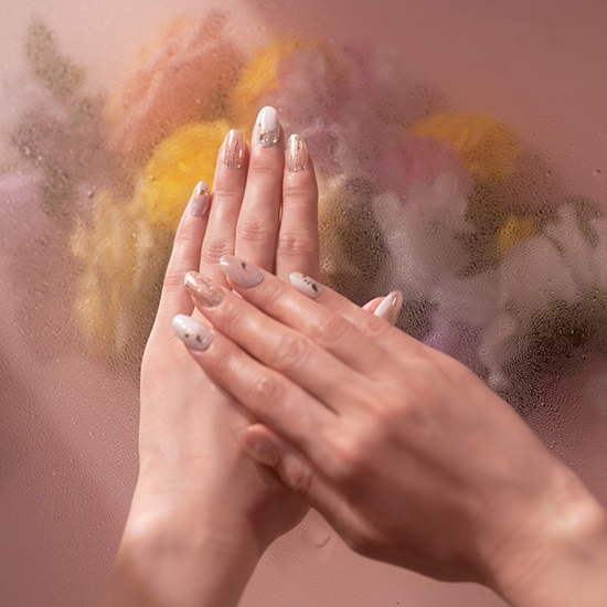 ●爪に油分や水分、汚れが付着しているとシールが剥がれやすくなりますので、爪の表面をキレイに拭き取ってください。