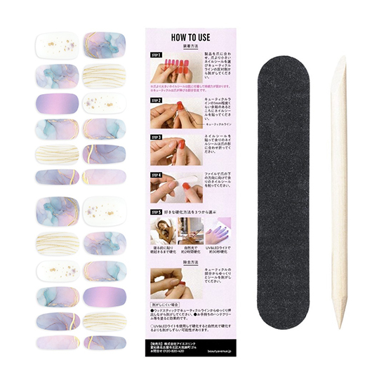 - ネイルシール×24枚、ミニネイルファイル1個、ウッドスティック1本
